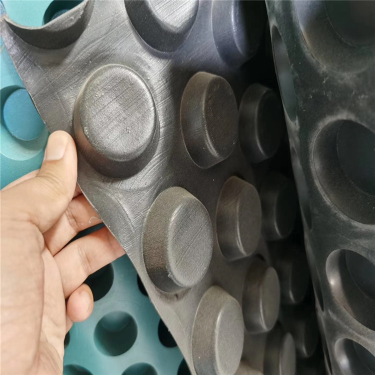 圓錐突臺的頂面膠接一層過濾土工布,以阻止泥土微粒通過,從而避免排水通道阻塞使孔道排水順暢。 傳統(tǒng)的排水方式使用磚石瓦塊作為導(dǎo)濾層、使用較多的鵝卵石或碎石作為濾水層、將水排到指定地點(diǎn)。而用排水板取代鵝卵石濾水層來排水則省時(shí)、省力又節(jié)能、節(jié)省投資、還能降低建筑物的荷載。